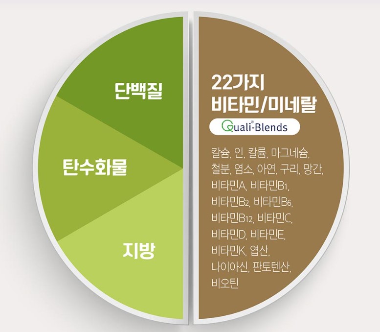 칼슘, 인, 칼륨, 마그네슘, 철분, 염소, 아연, 구리, 망간, 비타민A, 비타민B1, 비타민B2, 비타민B6, 비타민B12, 비타민C, 비타민D, 비타민E, 비타민K, 엽산, 나이아신, 판토텐산, 비오틴등 22가지 비타민과 미네랄 함유되어 있습니다.