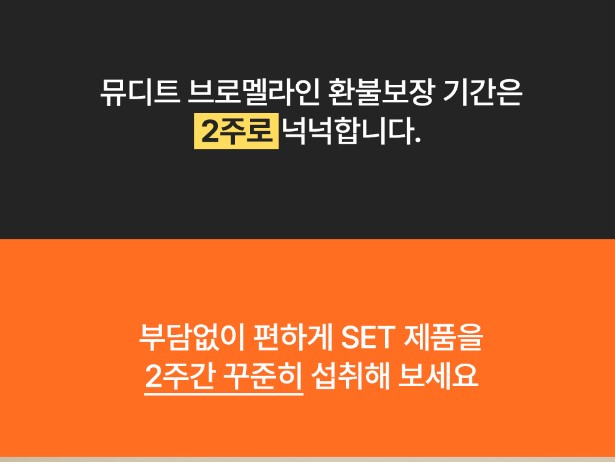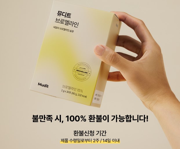 지금 뮤디트 브로멜라인은 제품에 대한 확신으로 불만족시 100% 환불안심제도를 실시하고 있습니다.