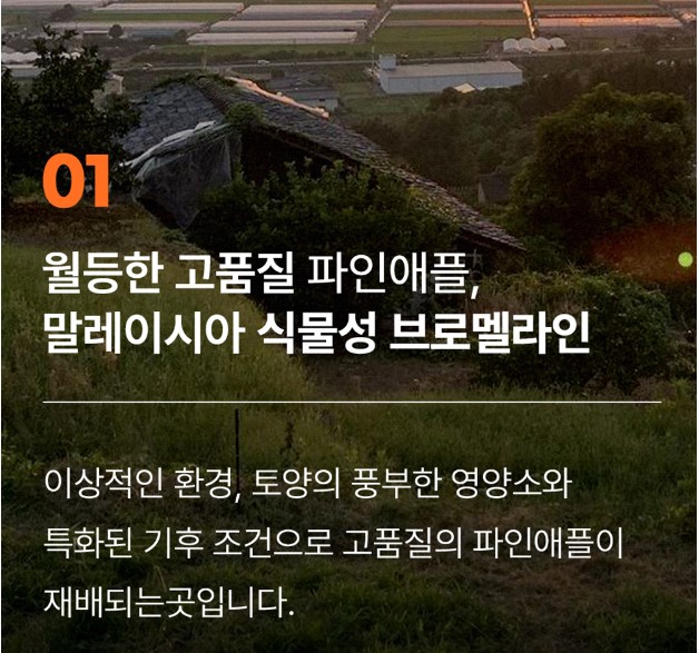 이상적인 환경, 토양의 풍부한 영양소와 특화된 기후 조건으로 고품질의 파인애플이 재배되는 곳입니다.