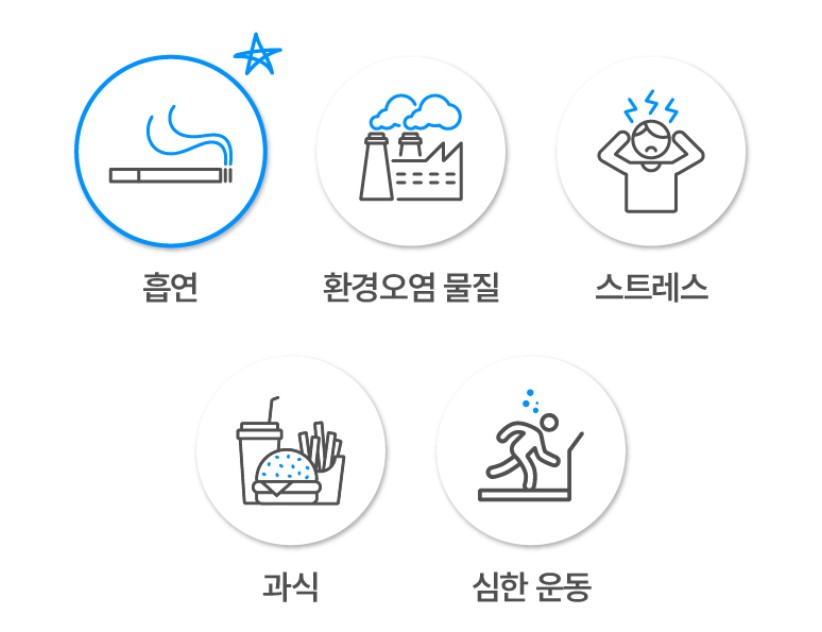 그 외 환경오염 물질, 스트레스, 과식, 심한 운동 등이 있습니다.