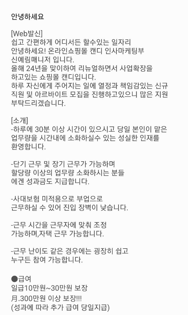 이런 문자는 저처럼 주부이신 분들은 혹 할 수 있는 문자인 거 같습니다.