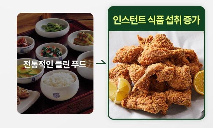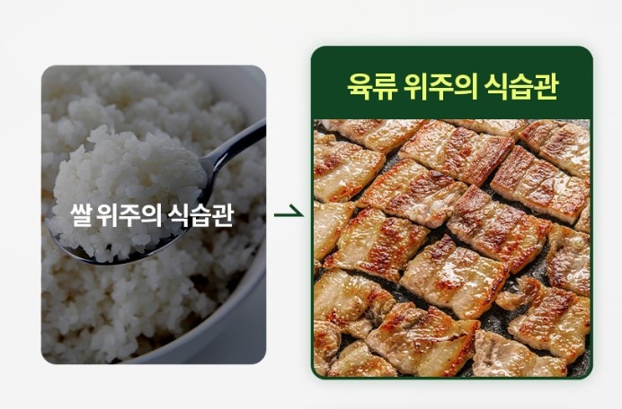 한국인의 육류 일일 섭취량은 2008년 85.2g → 2021년 142.1g으로 늘어났습니다.