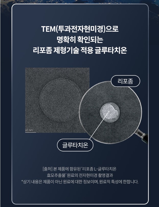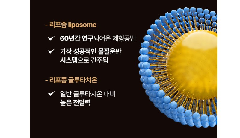 일반 글루타치온은 경구 섭취 시 위장관에서 분해되기 쉬워서 체내 흡수율이 낮은데 비해 리포좀 글루타치온은 인지질로 둘러 쌓여 있어 글루타치온이 분해되지 않고 체내에 높은 확률로 흡수가 됩니다.