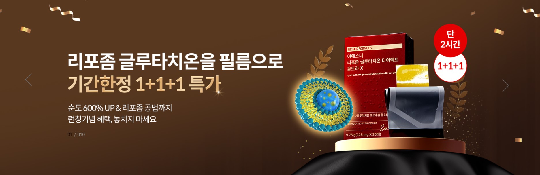 현재 여에스더 리포좀 글루타치온은 특별 이벤트를 진행 중이며 기간한정으로 1+1+1 특가로 제공하고 있습니다.