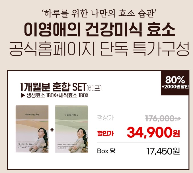 나이를 먹으면서 부쩍 소화가 안되고 밥도 조금 먹는데 계속 속이 불편하고 아무래도 활동량이 너무 작아서 그런 거 같기도 하고 해서 어떤 게 좋을지 찾아보다가 이영애의 건강미식 효소를 알게 됐어요.