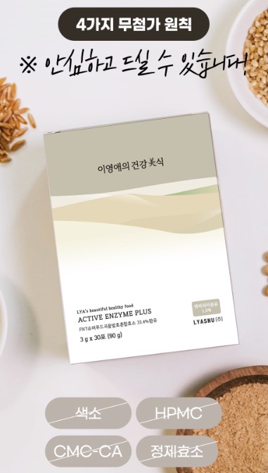 이영애 효소 성분은 한국인의 식습관에 맞추어 설계한 100% 곡물효소이며