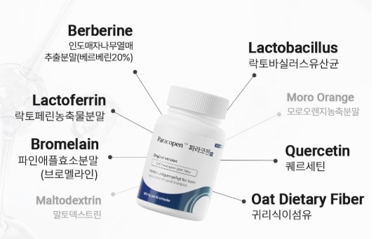 파라코펜에는 장내 유익균 지원 및 소화 개선 성분도 포함되어 있습니다.