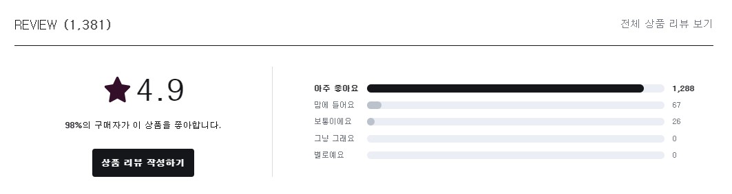 전체 상품평은 5점 만점에 아주 좋아요가 4.9이니 대체로 매우 만족하시는 것 같습니다.