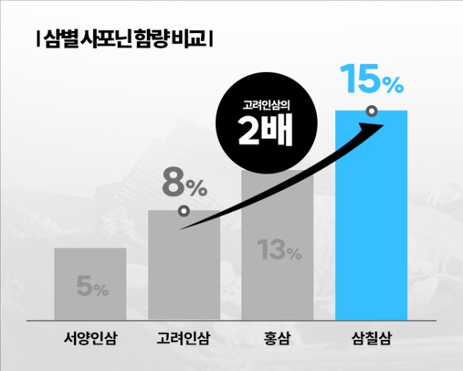 삼칠삼은 현대 들어 연국가 활발히 되고 있는 원료로 국내외 다양한 연구기관을 통해 삼칠삼이 인삼 대비 사포닌 함량이 2배가량 높은 것으로 검증되고 있습니다.